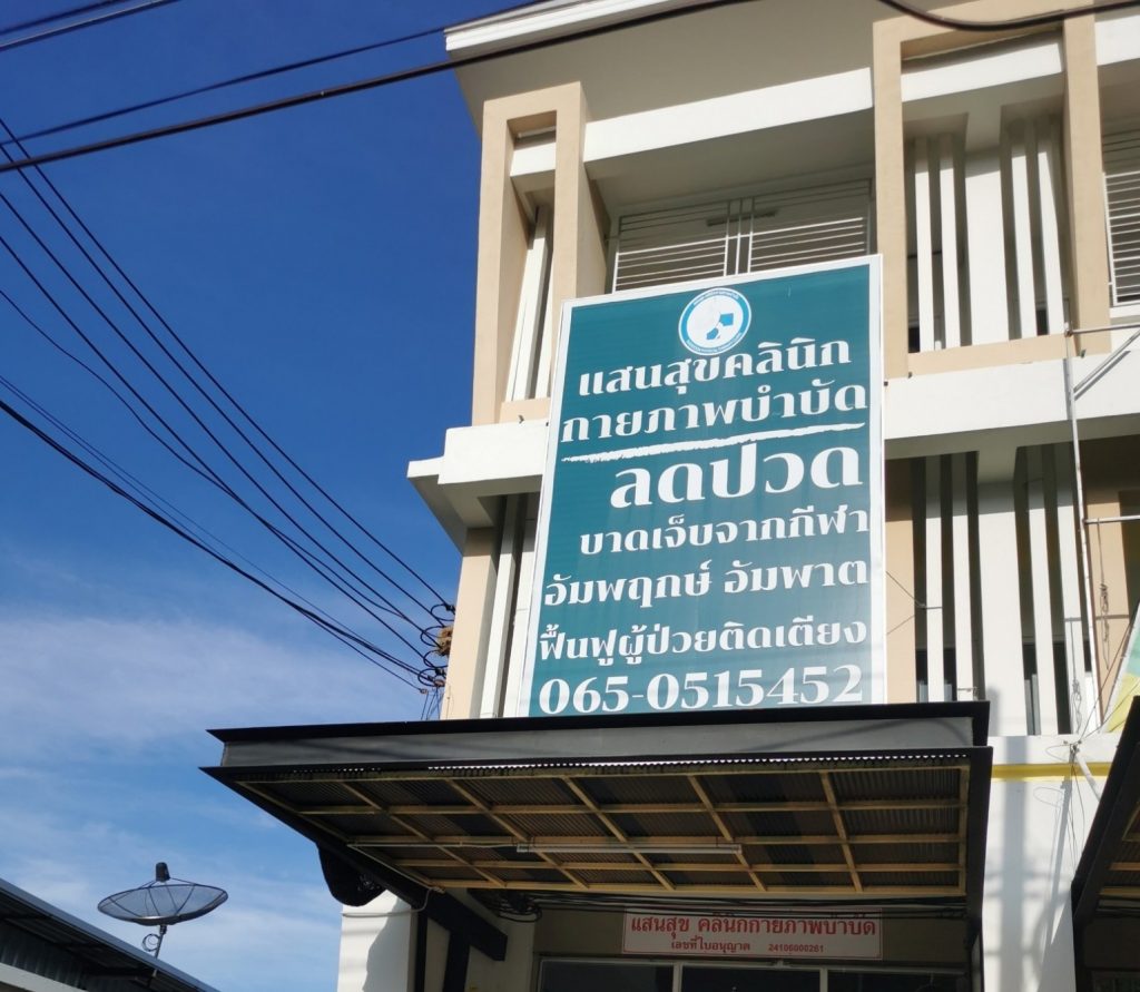 แสนสุข คลินิกกายภาพบำบัด อ.บางปะกง จ.ฉะเชิงเทรา ให้คำปรึกษา ตรวจประเมิน บำบัดรักษาด้วยวิธีการทางกายภาพบำบัด ดังนี้ ลดอาการปวด เช่น คอ บ่า หลัง กล้ามเนื้อ เอ็นกล้ามเนื้อ ข้อไหล่ ข้อเข่า ข้อสะโพก หรือข้อต่ออื่นๆออฟฟิศซินโดรม เพิ่มการเคลื่อนไหวในผู้ที่มีข้อติด เช่น ข้อไหล่ ข้อเข่า ผู้ป่วยหลังการผ่าตัดลดปวดจากหมอนรองกระดูกทับเส้นประสาทลดการชา ร้าวลงขา ชาลงแขน ชาปลายนิ้วแก้ไขภาวะกระดูกสันหลังคด เพิ่มความแข็งแรง และกระตุ้นการเคลื่อนไหว ในผู้ที่มีกล้ามเนื้ออ่อนแรง อัมพฤกษ์ อัมพาตครึ่งซีกกล้ามเนื้อใบหน้าอ่อนแรง หลับตาไม่สนิท ยักคิ้วไม่ขึ้น มุมปากตกบาดเจ็บจากการเล่นกีฬาลดอาการบาดเจ็บจากการทำงานกระตุ้นพัฒนาการเด็ก ฝึกเดิน ฝึกเคลื่อนไหวรับทำกายภาพบำบัดที่บ้าน ฟื้นฟูผู้ป่วยติดเตียง ผู้สูงอายุ